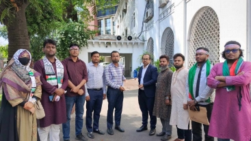 ফিলিস্তিন ইস্যুতে যুক্তরাষ্ট্র, সৌদি দূতাবাসে স্মারকলিপি প্রদান জবি শিক্ষক শিক্ষার্থীদের