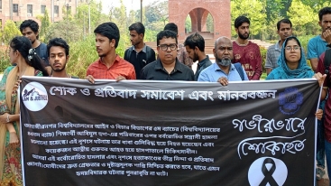 জাবি শিক্ষার্থী আবিদুল হুদার পিতাকে হত্যার প্রতিবাদে আইন অনুষদের মানববন্ধন