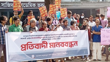 জবি শিক্ষকে হত্যার হুমকির প্রতিবাদে বিক্ষোভ, আল্টিমেটাম