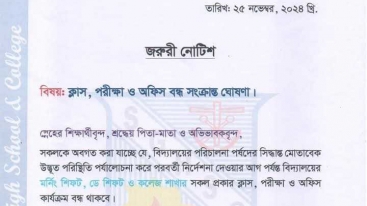 অনির্দিষ্টকালের জন্য বন্ধ ঘোষণা সেন্ট গ্রেগরি স্কুল এ্যান্ড কলেজ