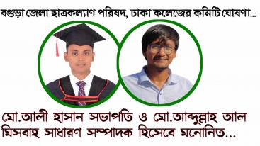 ঢাকা কলেজস্থ বগুড়া জেলা ছাত্র কল্যাণের কমিটি ঘোষণা..