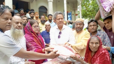 কাজিপুরে কণ্ঠশিল্পী কনকচাঁপার ঈদ উপহার বিতরণ