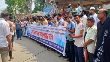 কাউখালীতে ভোক্তা অধিকার এর বিরুদ্ধে ব্যবসায়ীদের হয়রানী করার প্রতিবাদে মানববন্ধন