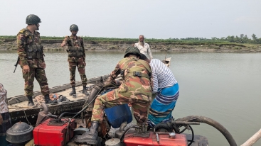 অবৈধভাবে বালু উত্তোলন এর ড্রেজার জব্দ করলেন যৌথবাহিনী